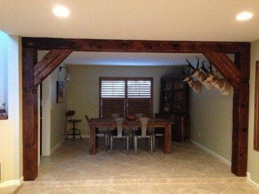 Here’s a beautiful way to spruce up a room! Customer Jessie Rice used reclaimed barn wood beams from Porter Barn Wood to accent their room.