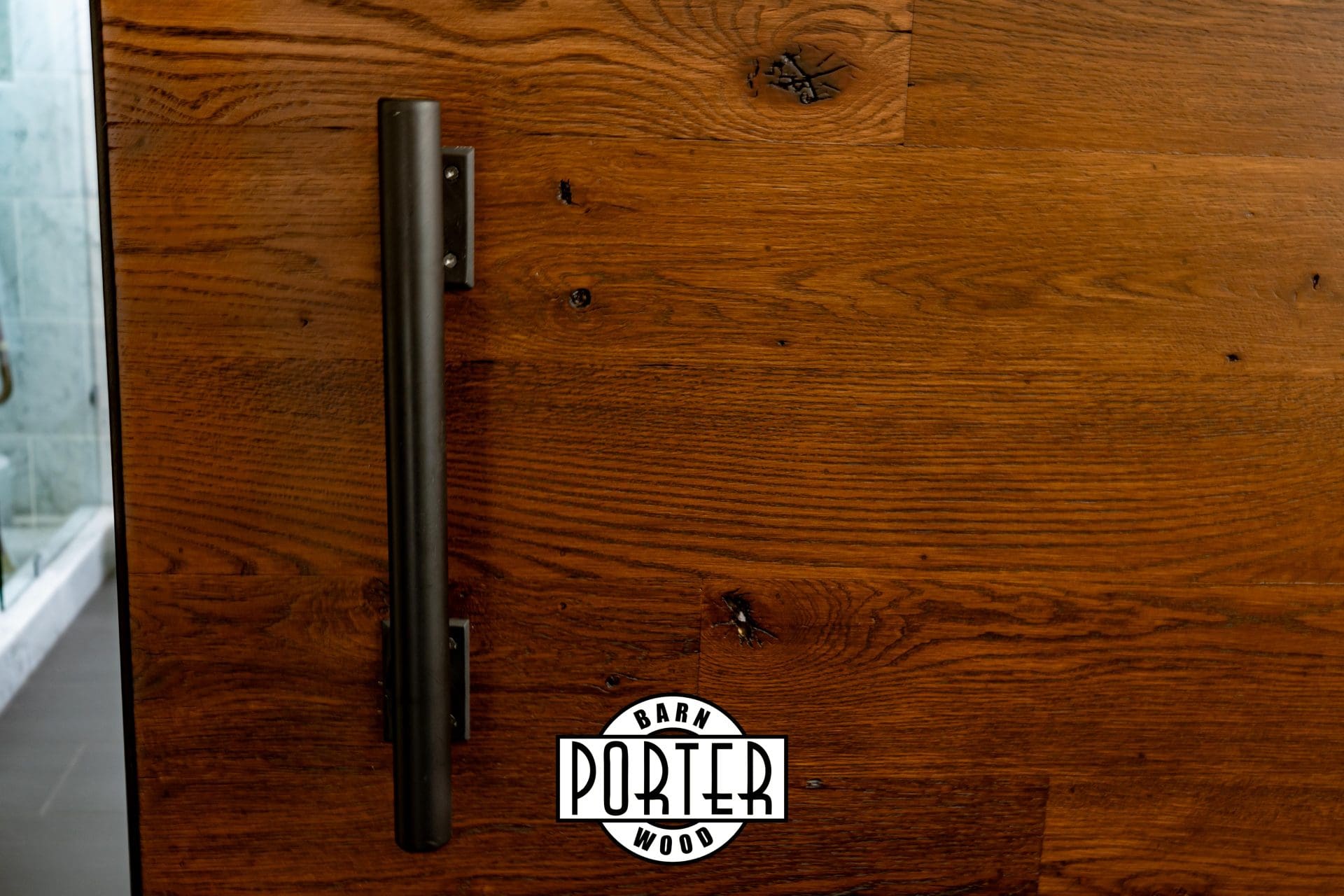 Custom-made sliding barn doors define living spaces and add warmth to the room.