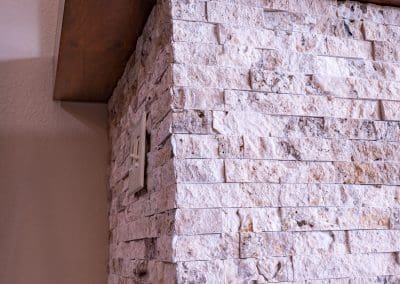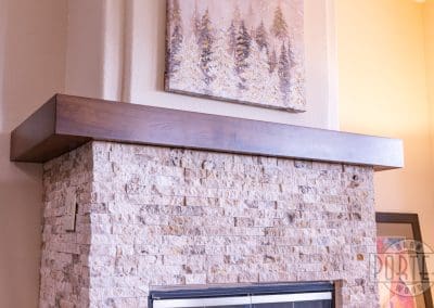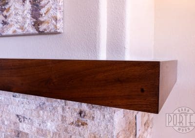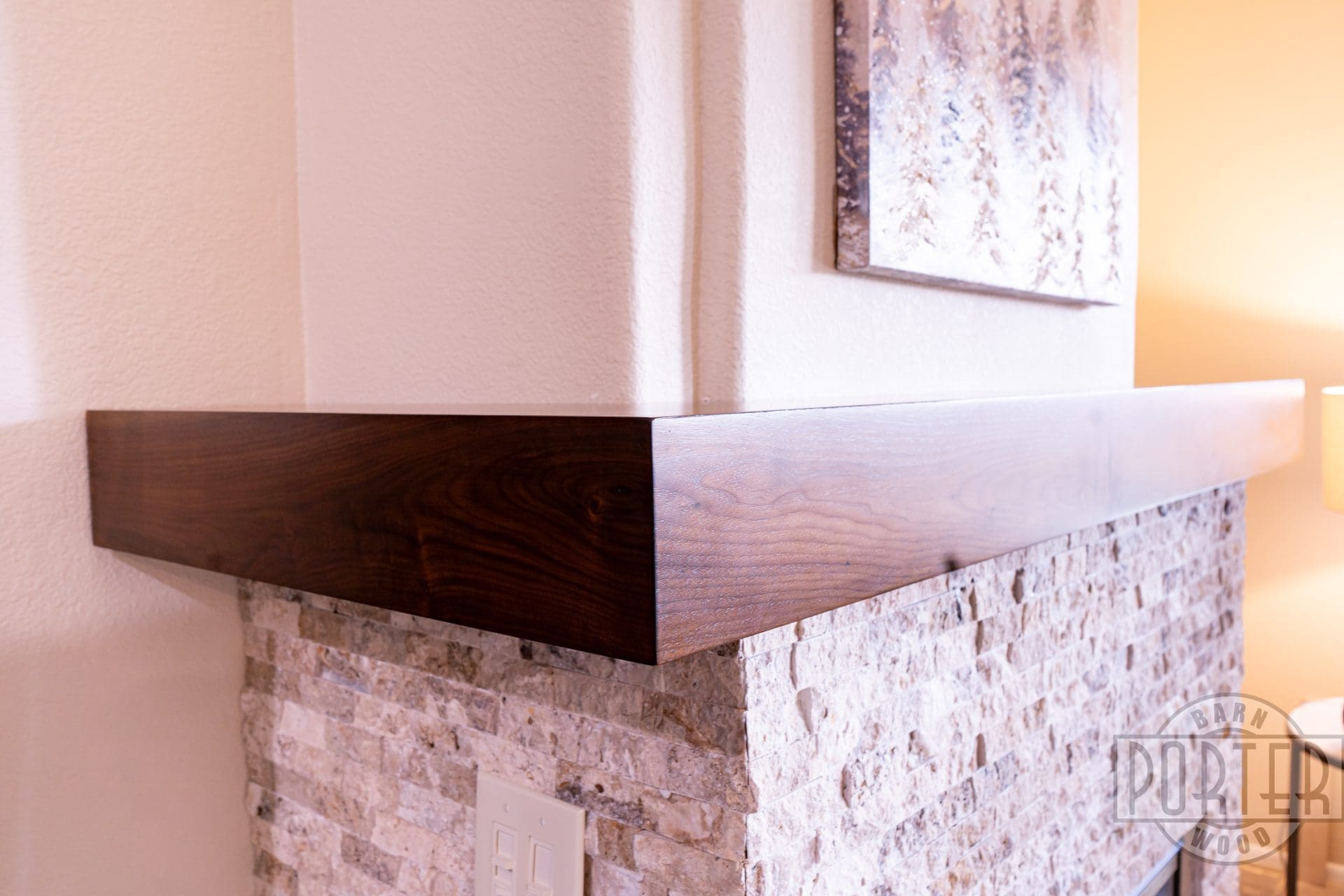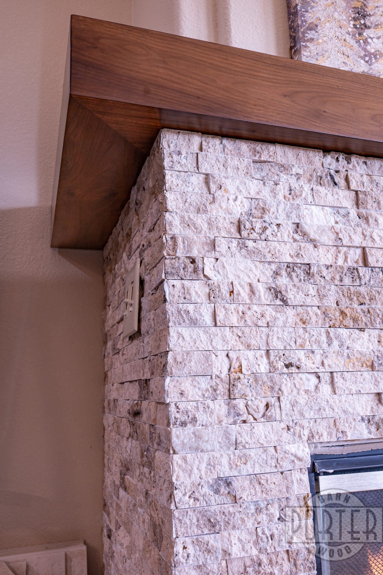 The warm walnut tones of the mantel frame the fireplace and welcome the winter weather.